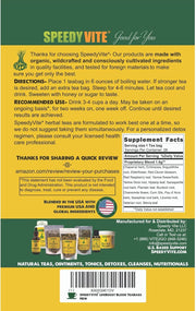 SpeedyVite® herbal teas are formulated to work best one at a time; for personalized guidance, consult your licensed health care professional.